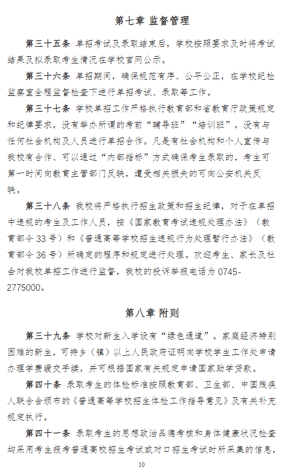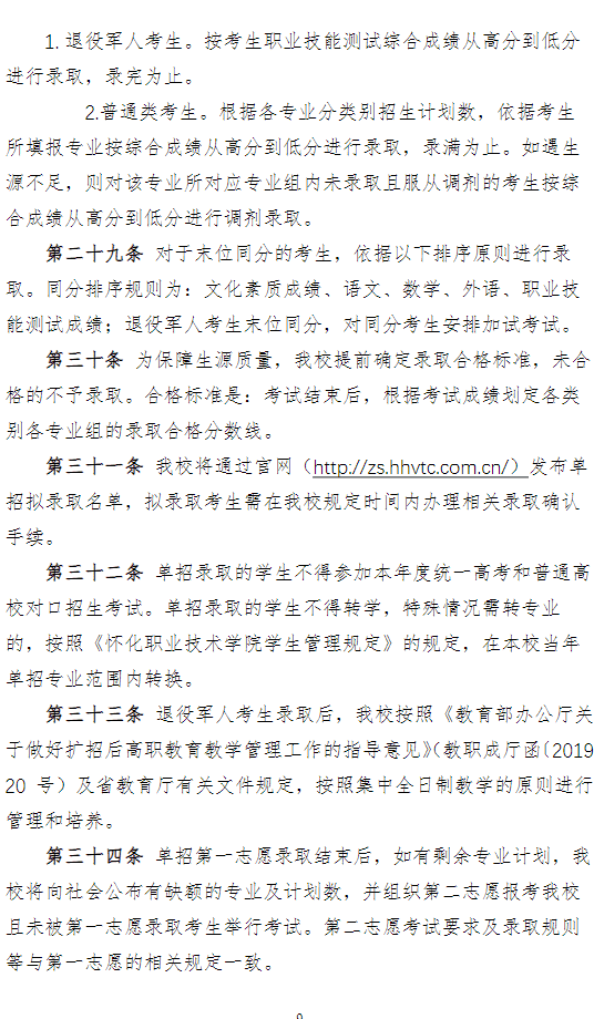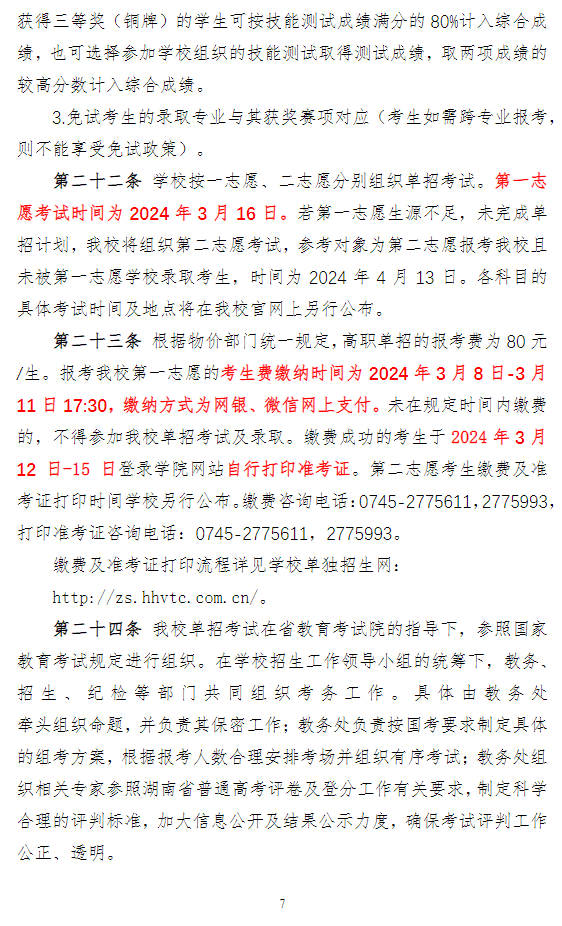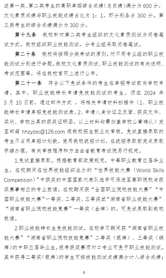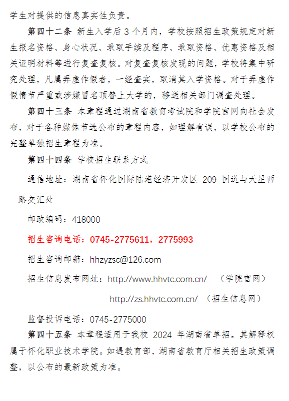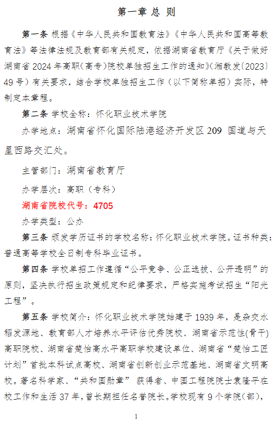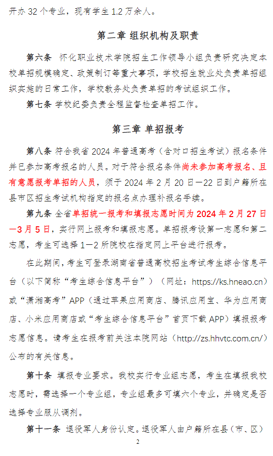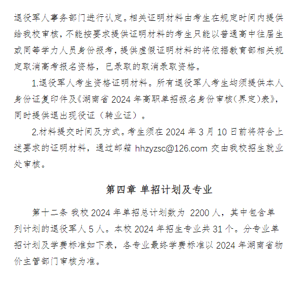 怀化职业技术学院2024年高职单招章程